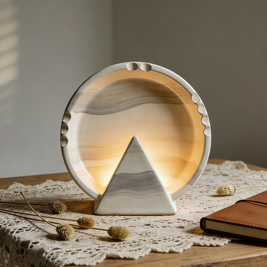Marbled Mountain Ceramic Triangle Night Light - Wabi-Sabi Glow Lamp for Desk & Bedroom