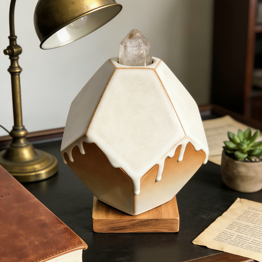 Drip Glaze Ceramic Crystal Diffuser Lamp - Geometric Terracotta & White Desk Decor with Natural Crystal Point