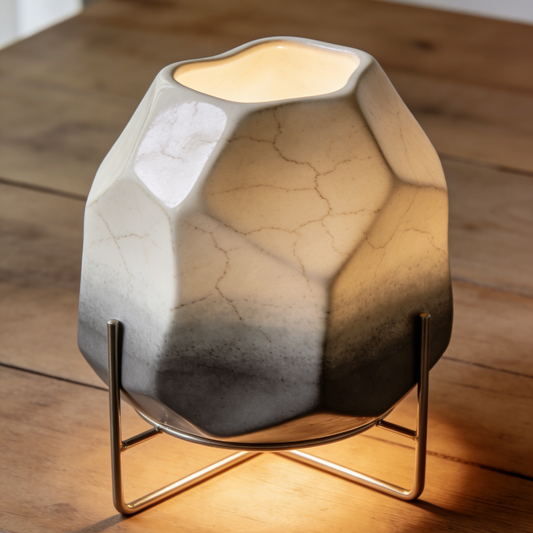 Crackle Glaze Gradient Ceramic Lamp - Faceted Grey & White Vessel Light with Metal Stand