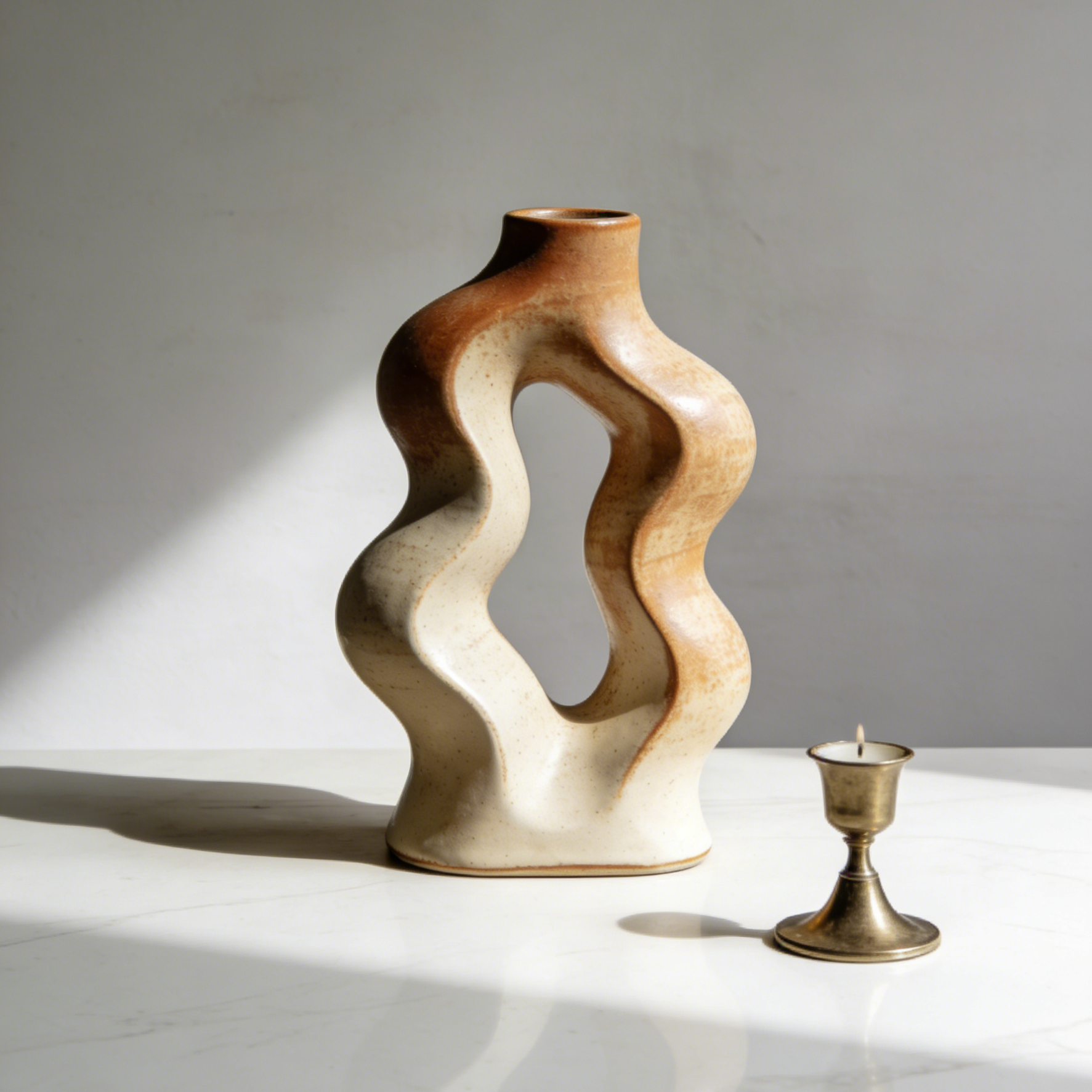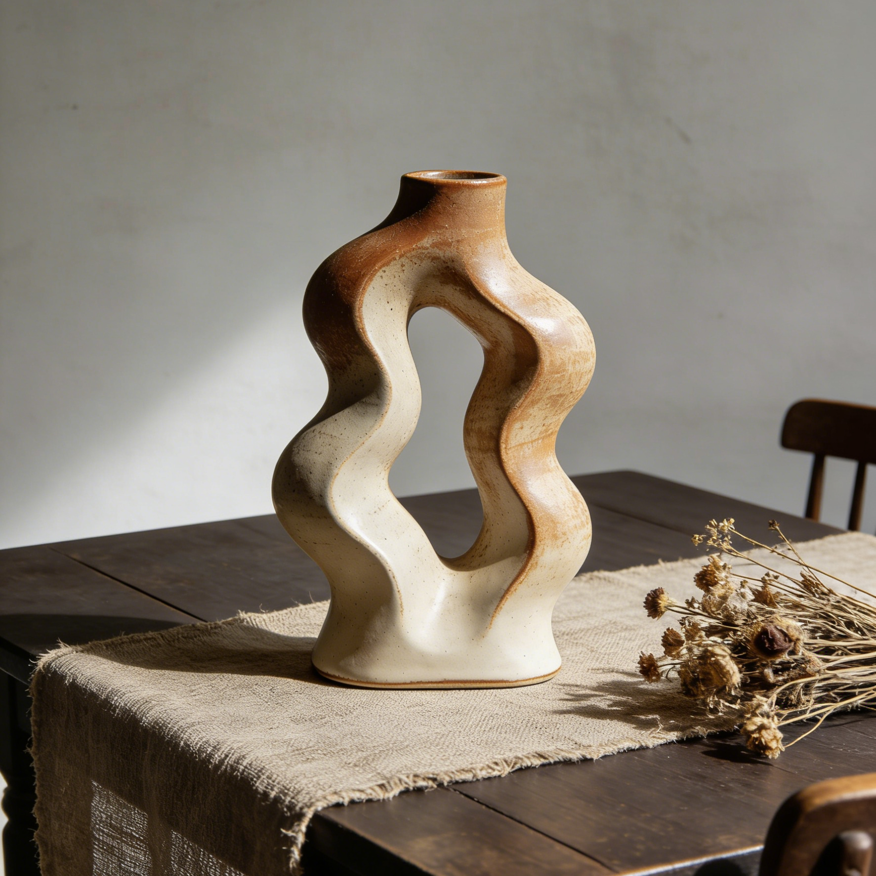 ✅ Organic Wavy Silhouette: The hand-thrown ceramic body twists and curves in a fluid, organic shape, creating a sense of movement and flow.